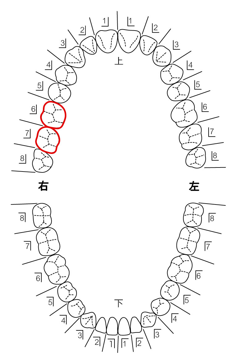 患者さんは40代の女性です。噛みしめ・食いしばり傾向の強い患者さんで保険の CR (コンポジットレジン)で治療した右下の奥歯の詰めものが欠けてしまいご来院されました。この CR の隙間から既に虫歯が進行していたため、虫歯治療後にジルコニアインレーで治療しました。その後保険で治療した金属の被せ物も食いしばりで脱離してしまったとご来院され、こちらも同様にジルコニアクラウンで治療しました。これらジルコニアによる白い歯の治療は自由診療となります。